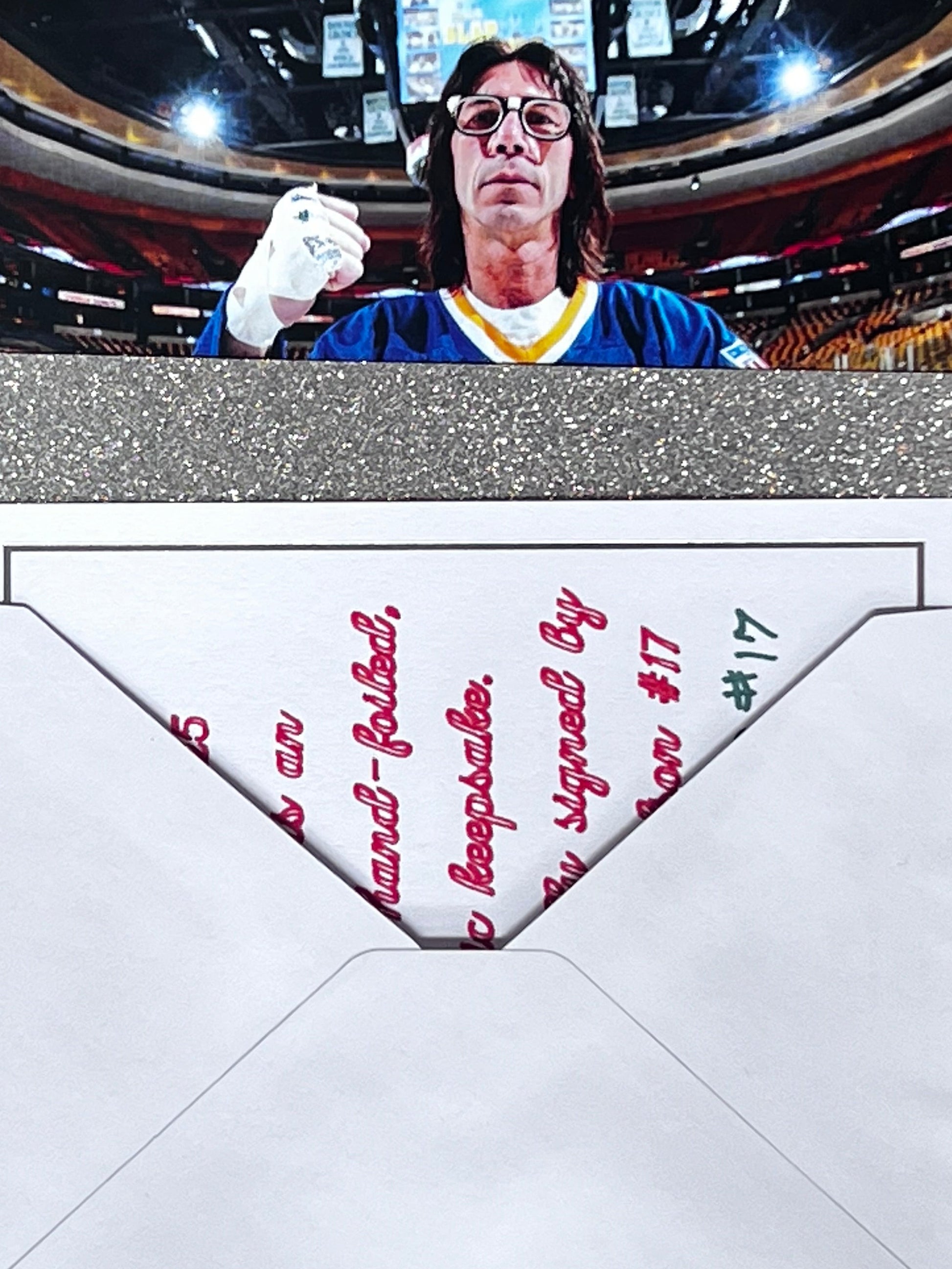 Steve Carlson is #17, the jersey number he wore throughout his professional hockey career. Limiting this ornament to seventeen autographed pieces reflects that legacy in a personal, meaningful way.