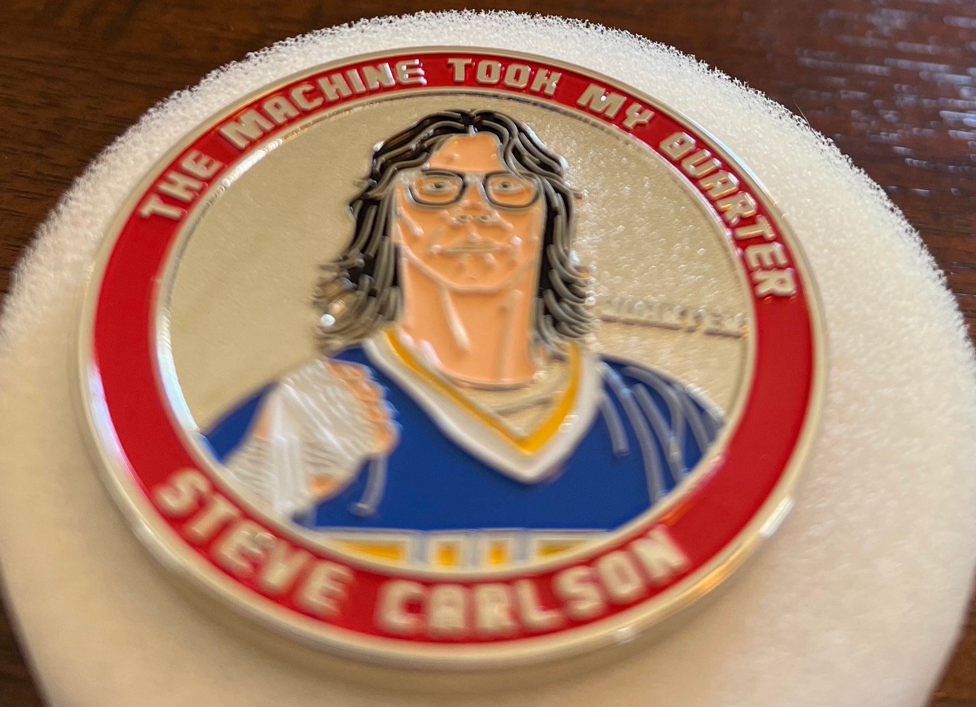 Coin will come in plastic sleeve and then wrapped in foil that is autographed by Steve Carlson #17