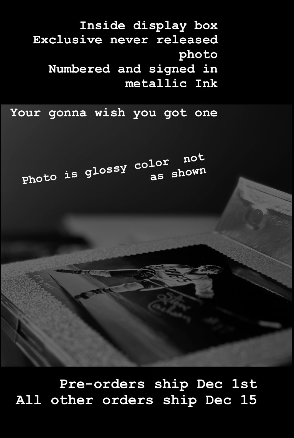 Display box will feature an exclusive never released photograph that will be autograph in metallic ink